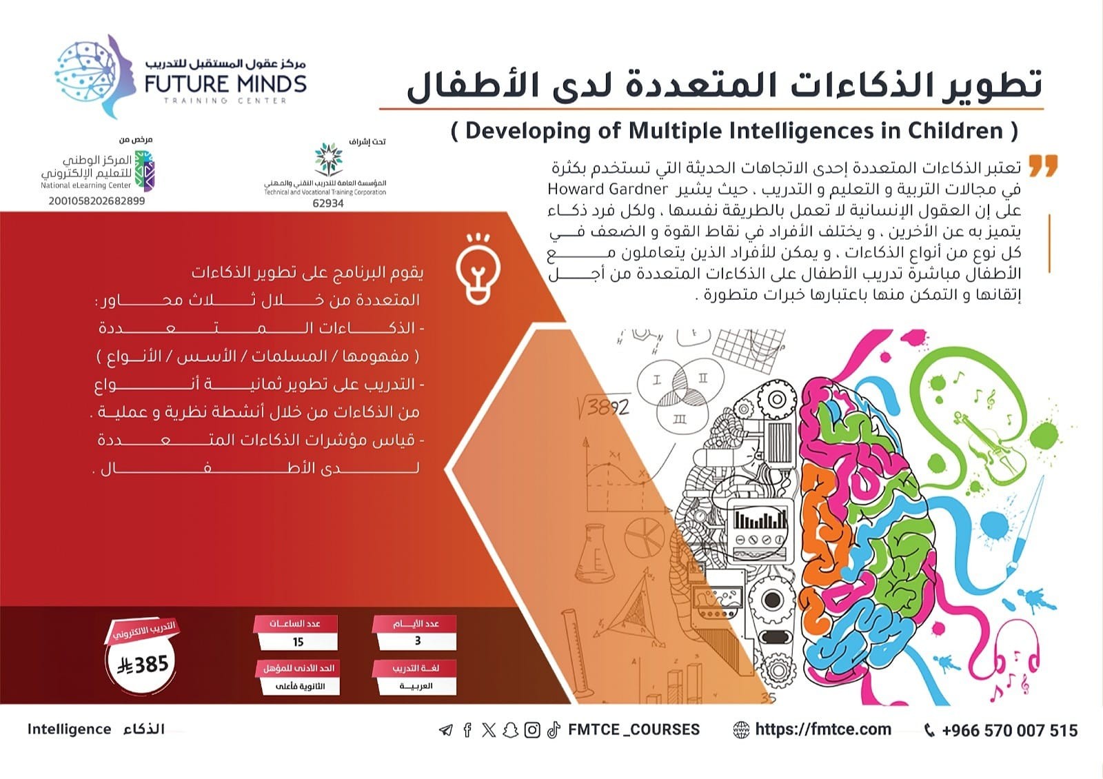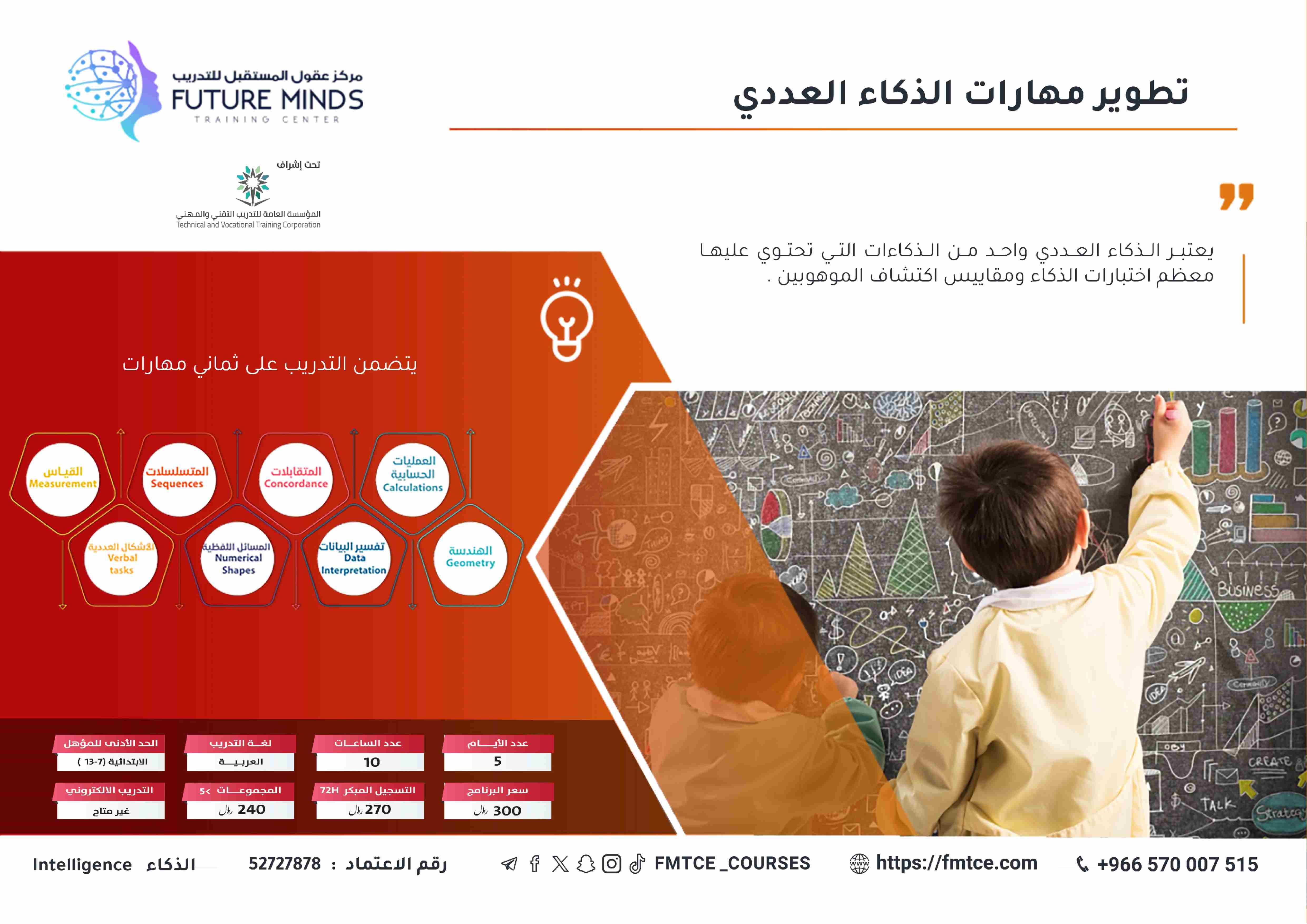 يعتبر الذكاء العددي واحد من الذكاءات التي تحتوي عليها معظم اختبارات الذكاء و مقاييس اكتشاف الموهوبين يقوم البرنامج على تطوير مهارات الذكاء العددي من خ...