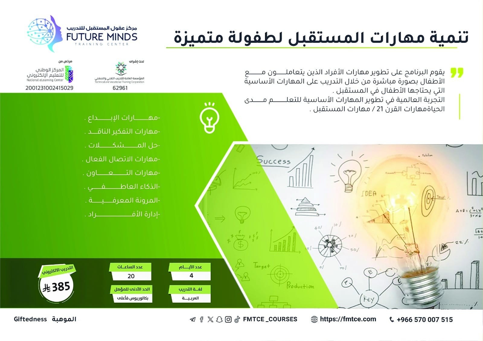يقوم البرنامج على تطوير مهارات الأفراد الذين يتعاملون مع الأطفال بصورة مباشرة من خلال التدريب على المهارات الأساسية التي يحتاجها الأطفال في المستقبل (...