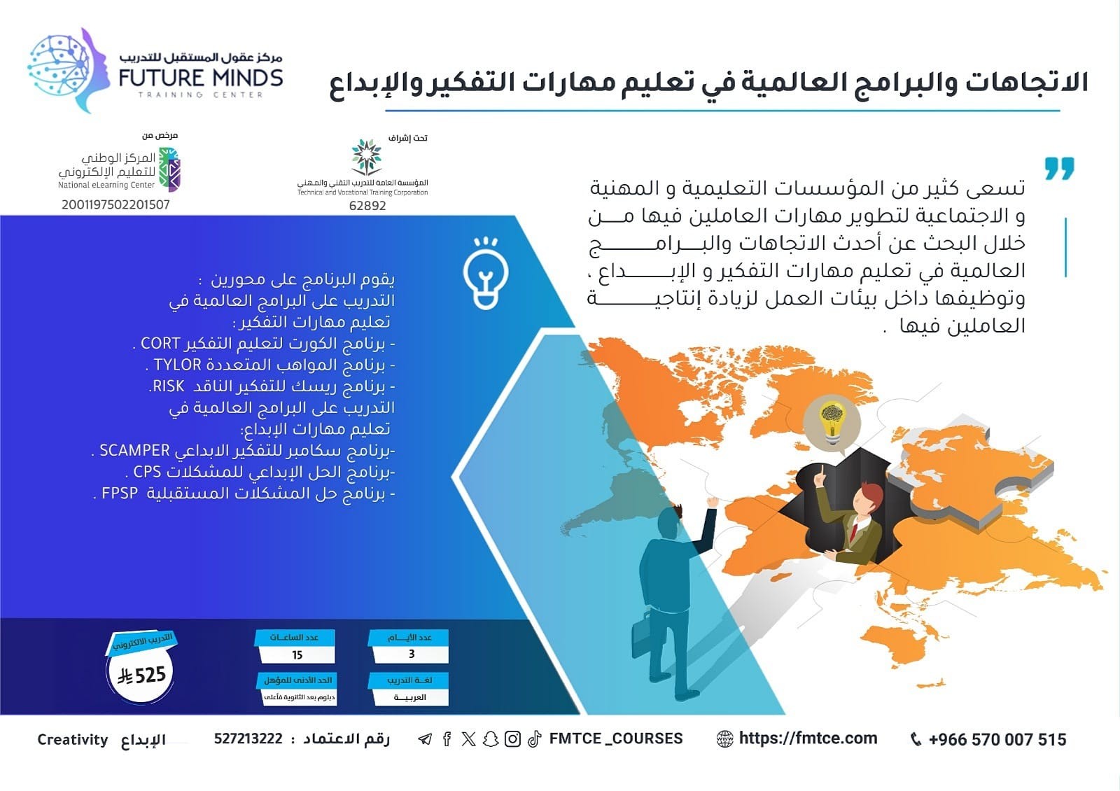 تسعى كثير من المؤسسات التعليمية و المهنية و الاجتماعية لتطوير مهارات العاملين فيها من خلال البحث عن أحدث الاتجاهات والبرامج العالمية في تعليم مهارات ا...