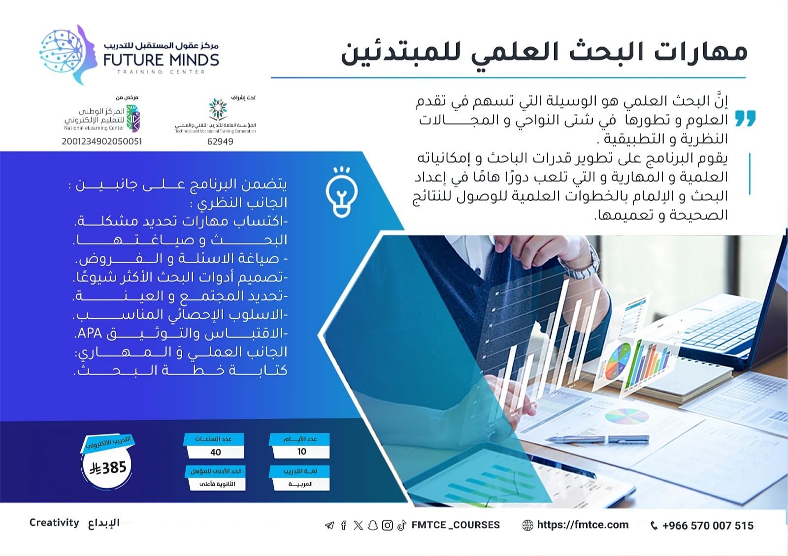 يعتمد البرنامج على اكتساب مهارات البحث العلمي للمتدربين من خالل جانبين : الجانب النظري: اكتساب مهارات تحديد مشكلة البحث و صياغتها ، و صياغة االسئلة و...